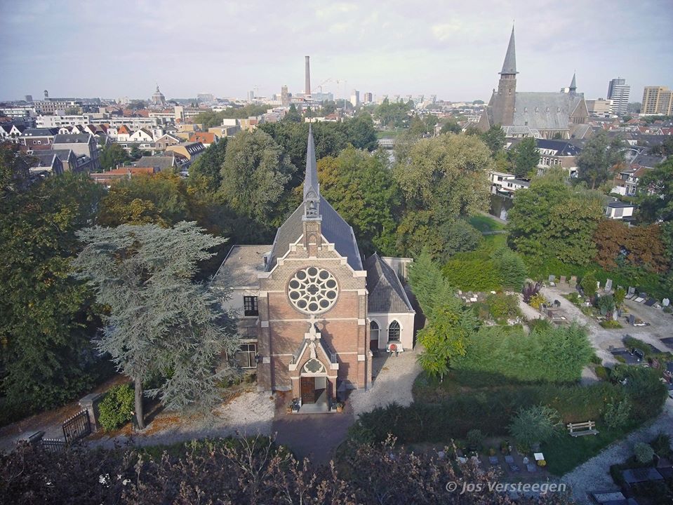 Bij het onlangs doorkijken van vrij recent archiefmateriaal, viel ineens een ouderwets schoolschriftje met paarsige kaft en etiket Bestek en Voorwaarden van kapel R.C. begraafplaats te Leiden in het oog. Voorin liggen twee kwitanties, de ene uit 1903 voor het smeren van de klok, maar de andere luidend: De ondergeteekende, Franciscus Dominicus Theodorus Rietbergen, metselaar te Leiden, verklaart aan te nemen van de Commissie der RC begraafplaats aan de Zijlpoort te Leiden het vergrooten der kapel met het maken van eene toren volgens door hem gemaakt bestek en teekening voor eene som van vijfduizend gulden, zegge f 5000,00. De aannemer, F.D.T. Rietbergen. Gedaan te Leiden 14 feb. 1888. Een beter bewijs kan men haast toch niet wensen? Al moet je natuurlijk altijd slagen om de arm houden: misschien had hij wel erg leentjebuur gespeeld voor bijvoorbeeld de fijne details van het roosvenster of andere details. Helaas zijn de tekeningen waarnaar verwezen wordt niet aangetroffen, zodat tekenstijl of dergelijke ons niet verder kunnen helpen.